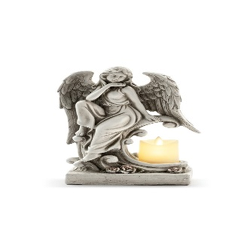 Angel with LED candleholder Resin 11" H x 7" L. 2 CR2032 Batteries Included