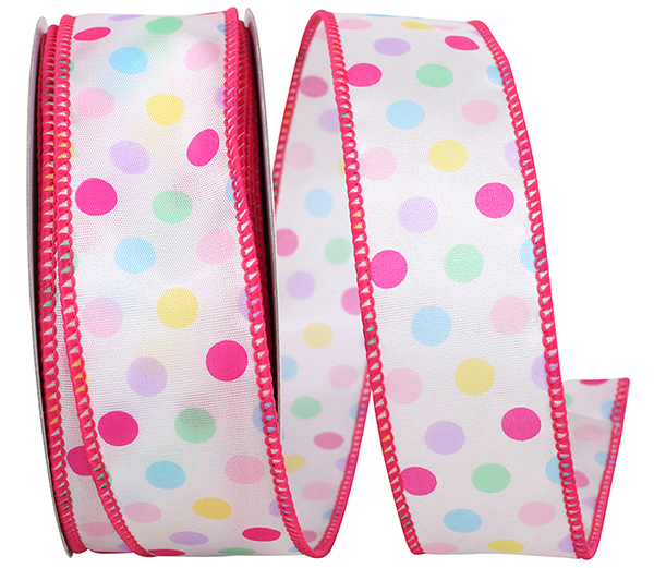 Aspirin Pastel Multi Dot Wired Edge 1.5" Width, 20 Yards