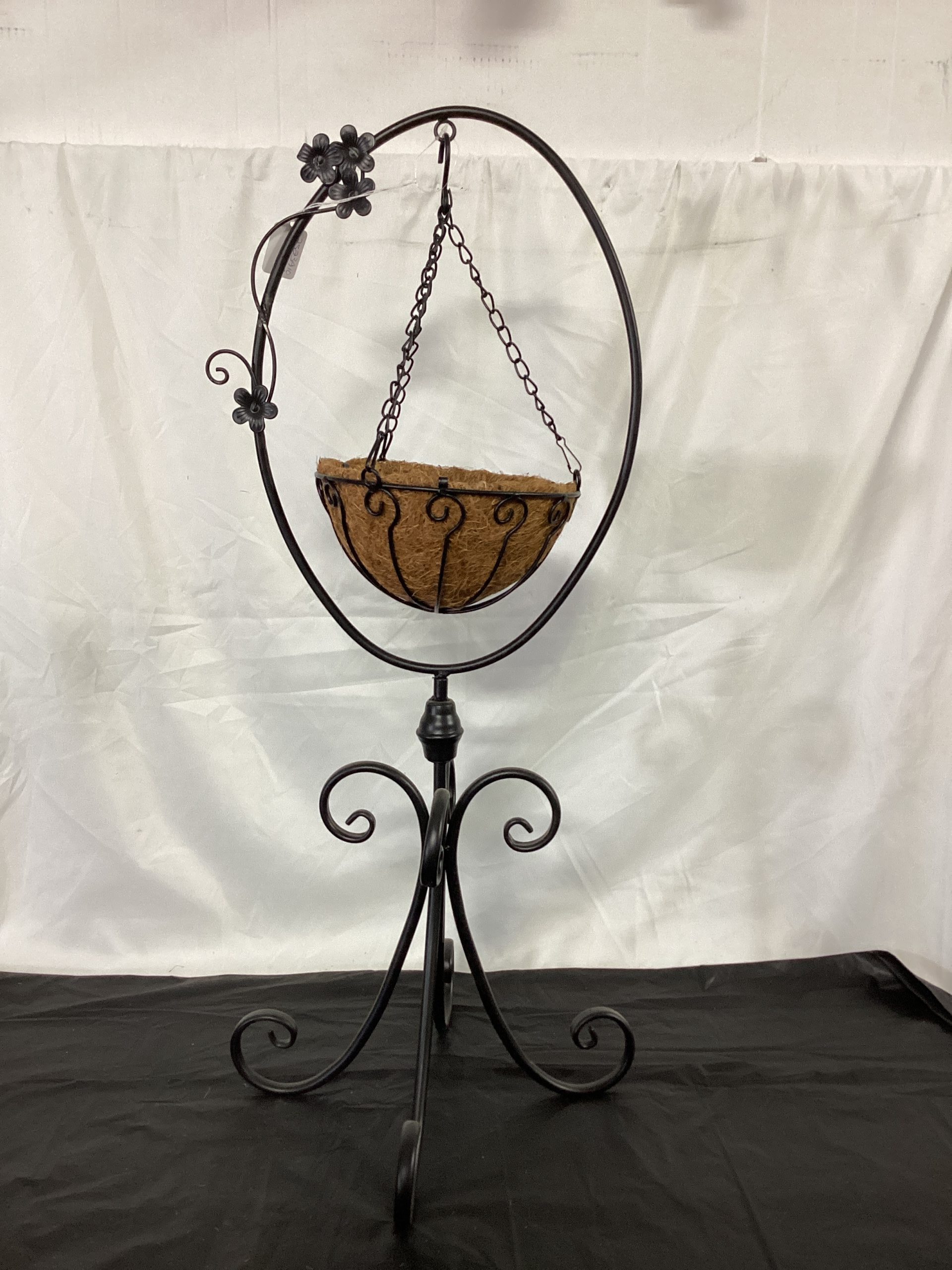 Black Metal Coco Mat Planter. 30.7" High.