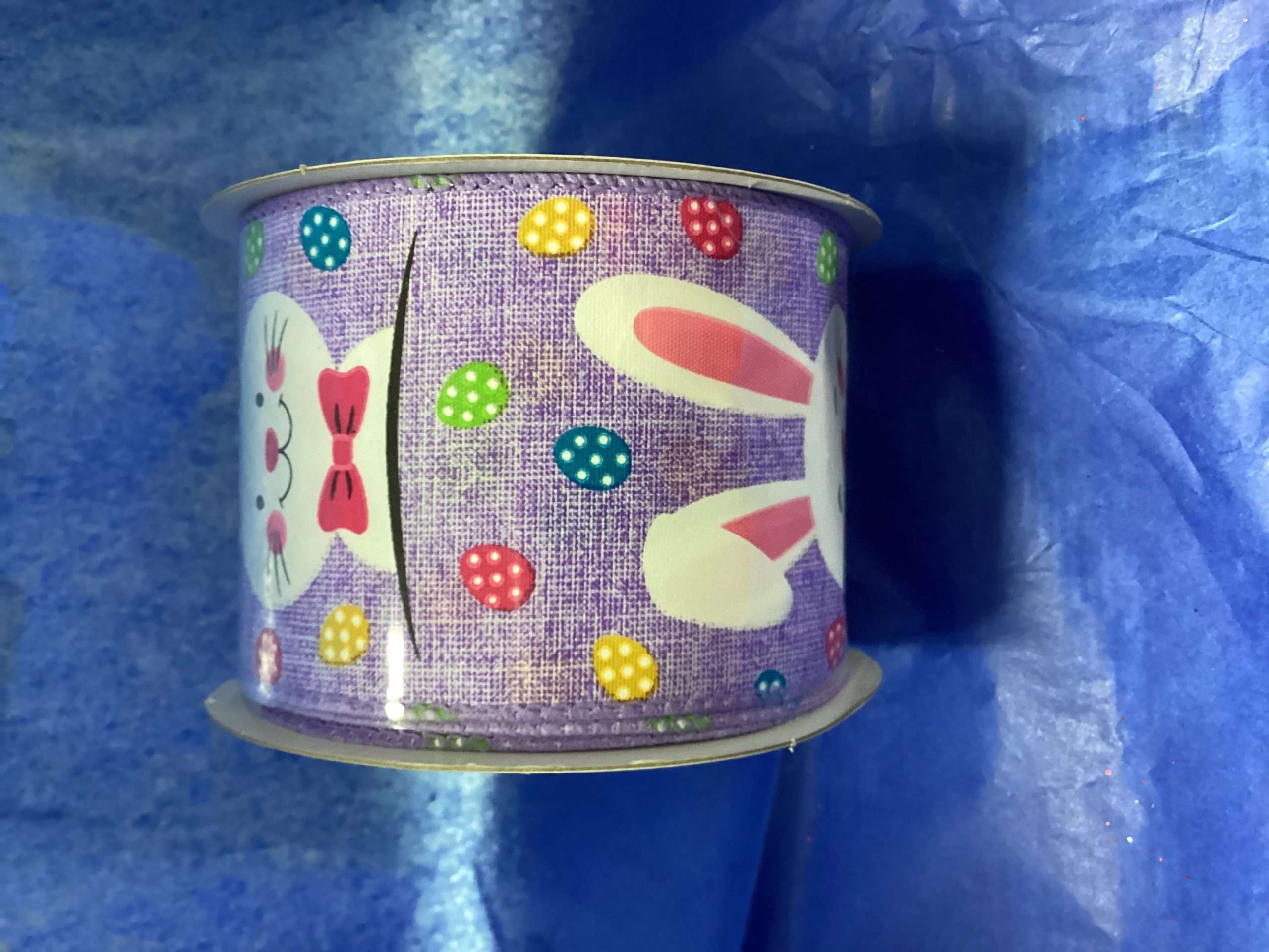 2.5" Bunny Face Multi Egg Wired Edge Purple Ribbon 10 Yards