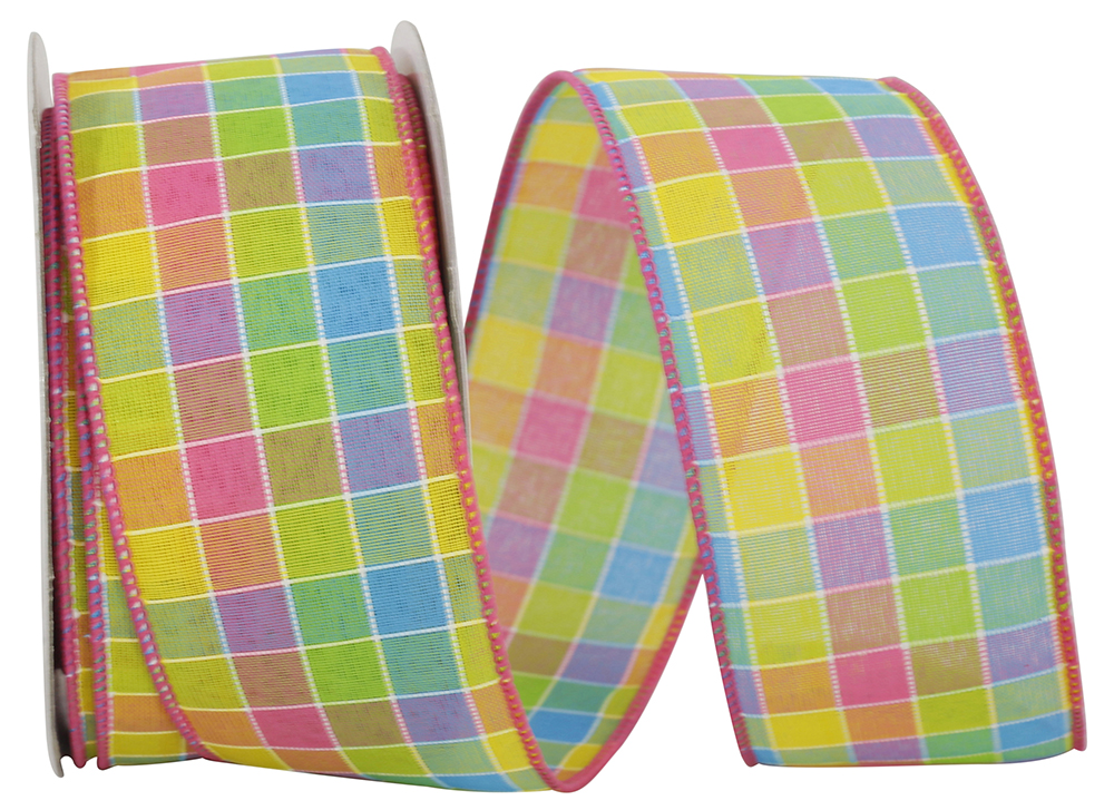 Colorful Stitch Check Wired Edge Ribbon 2.5"