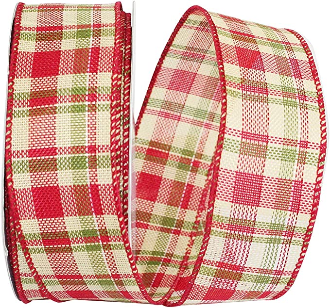 Cranberry Moss Plaid Hopsack Ribbon 1.5" Width