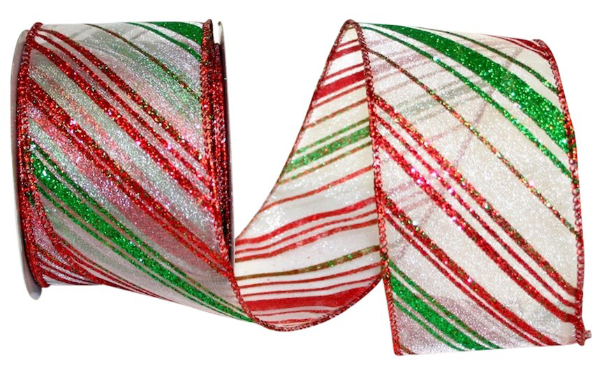 2 1/2" Glitter Diagonal Stripe Sheer Wired Edge Ribbon 10 Yards