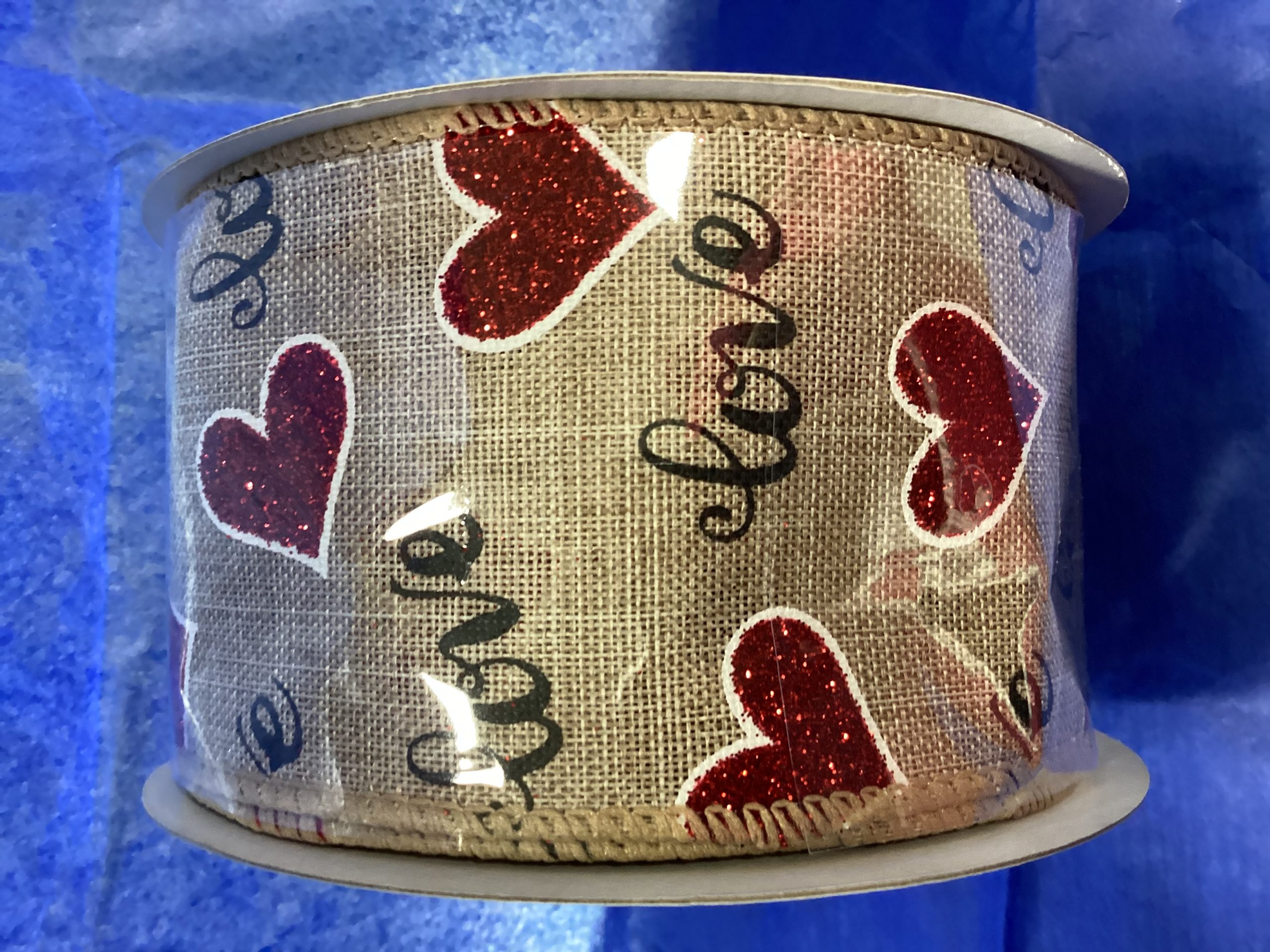 2 1/2" Glitter Hearts Love Linen Wired Edge Ribbon 10 Yards