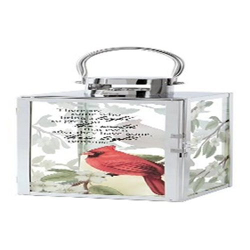 Light Remains. Flameless LED Candle Lantern made with High Quality Chrome Finish. Built in Automatic Timer, 6 Hours On/18 Hours Off. 3AAA Batteries Not Included. Suitable for Hanging or Use Freestanding. Recommended as an Accent in Floral Arrangements. Weather Friendly Stainless Steel.12" H x 5" W x 5" D
