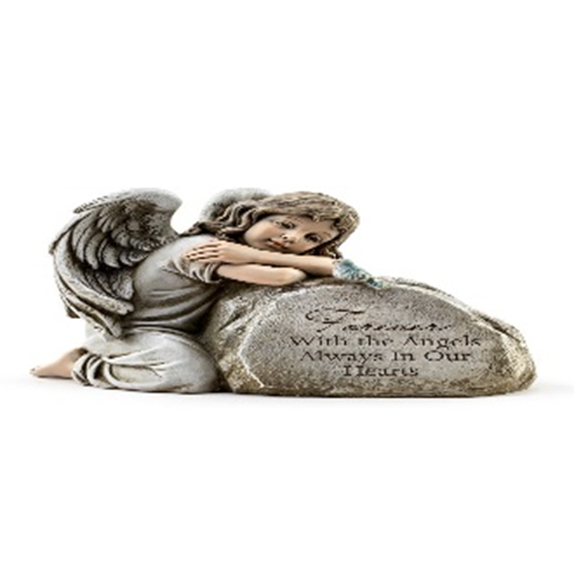 Sentiment Girl with Bird. Resin. "Forever with the Angels Always in our Hearts"