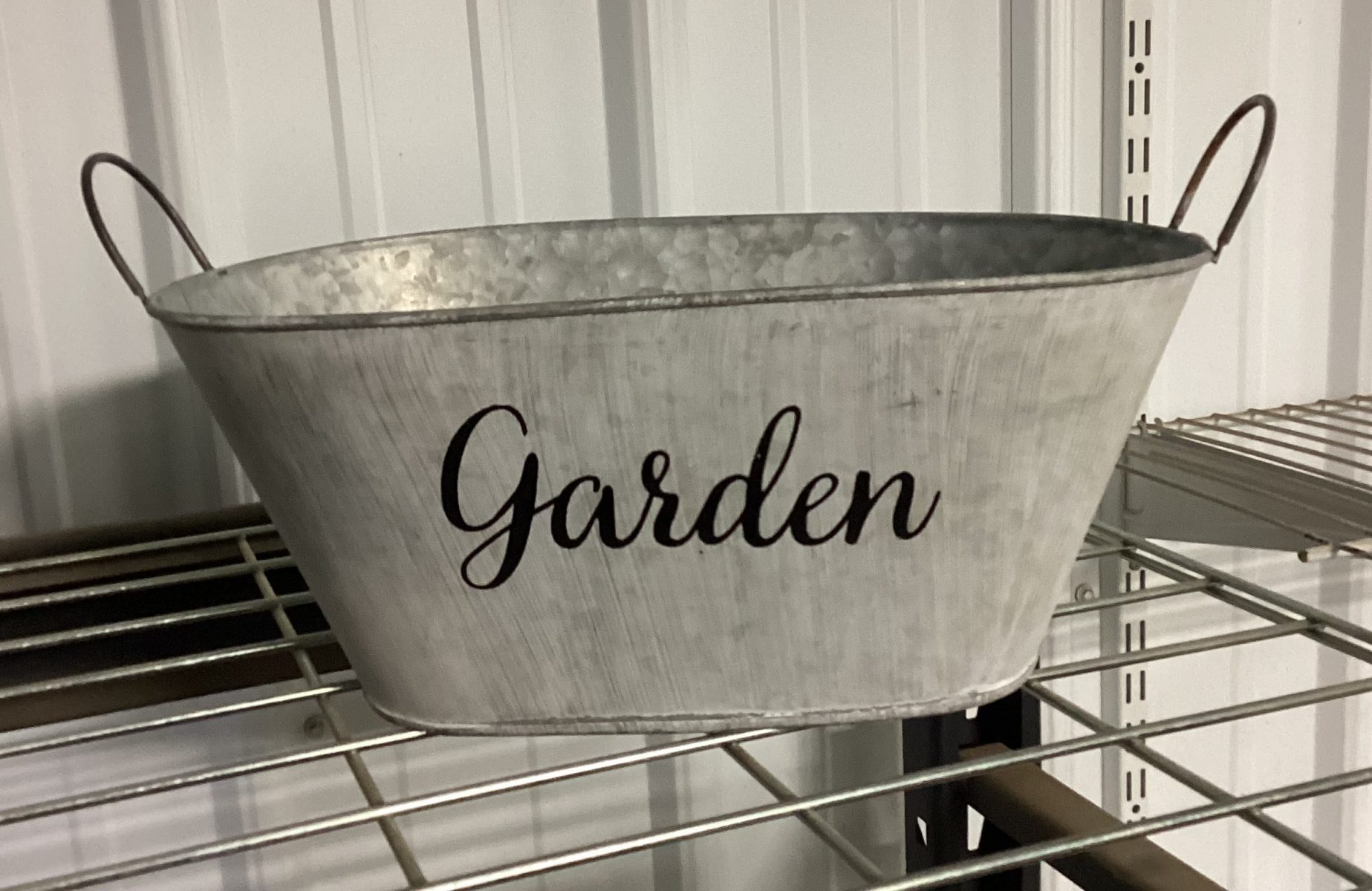 White Painted Metal Container with Garden wrote on the front